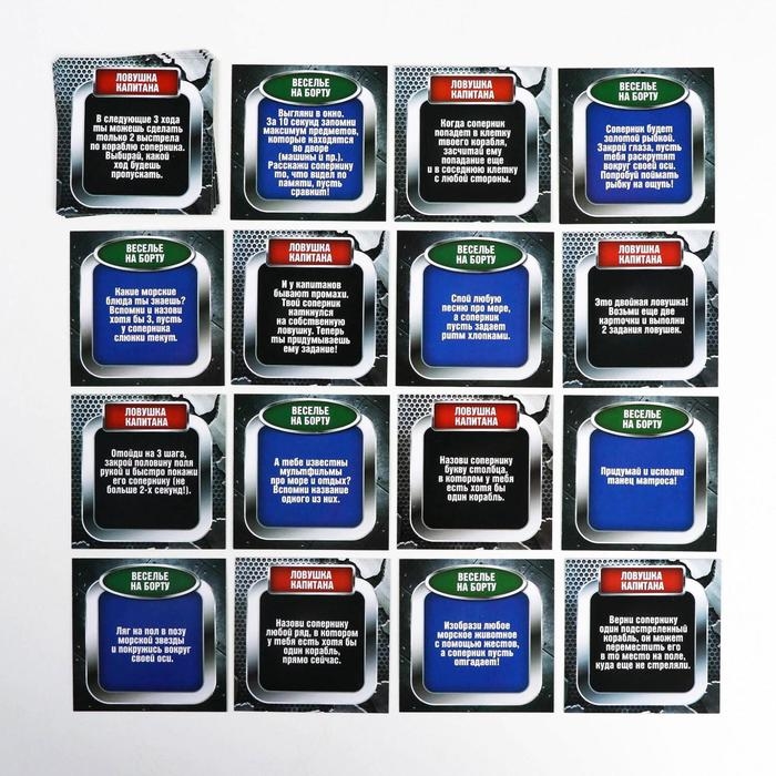 Также в набор входят карточки. Добавьте их в игру для ещё большего веселья! Выполняйте морские фанты или тяните карты-ловушки для соперника.