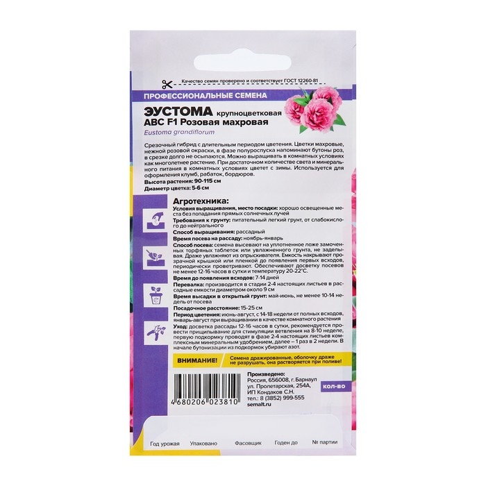 Семена цветов Эустома АВС розовая махровая, О, 5 шт.