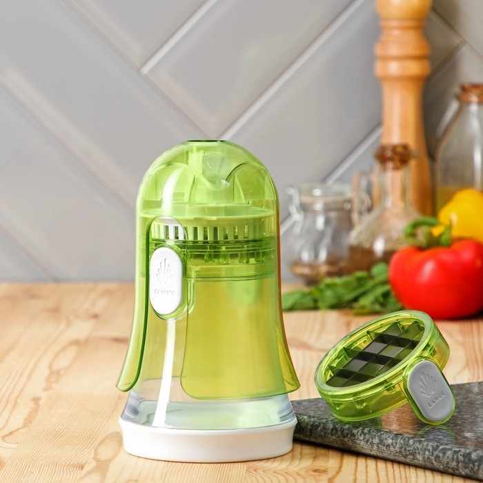 Овощерезка Доляна, 2 сменные насадки, съёмный пушер, 10,6×10,6×16,6 см, цвет зелёный, белый