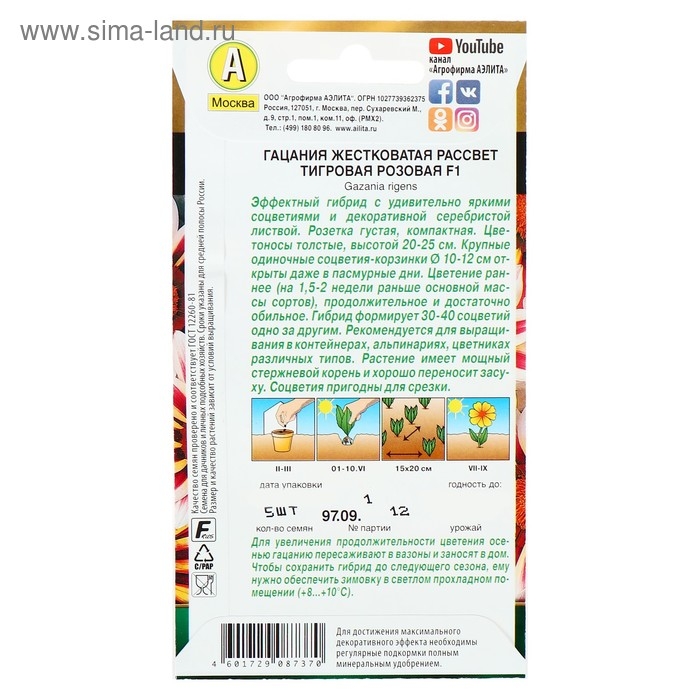 Семена цветов Гацания "Яркая вспышка", F1, 0,03 г