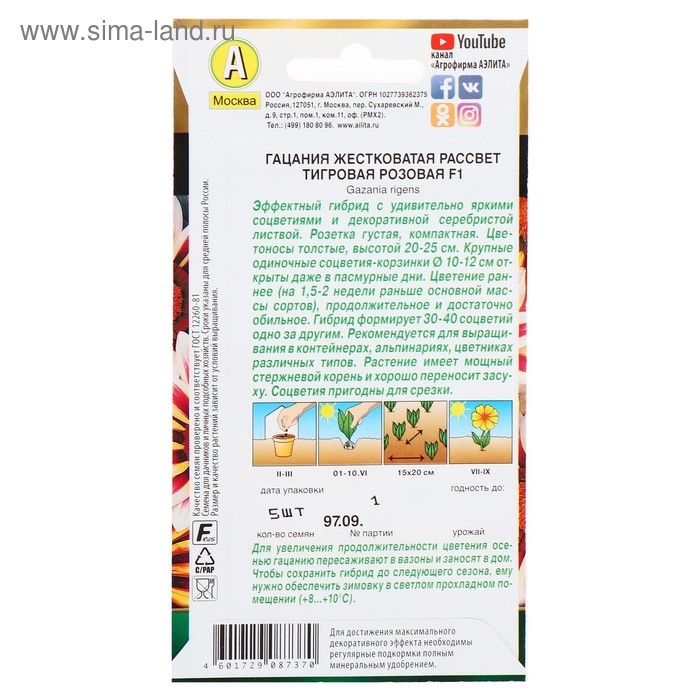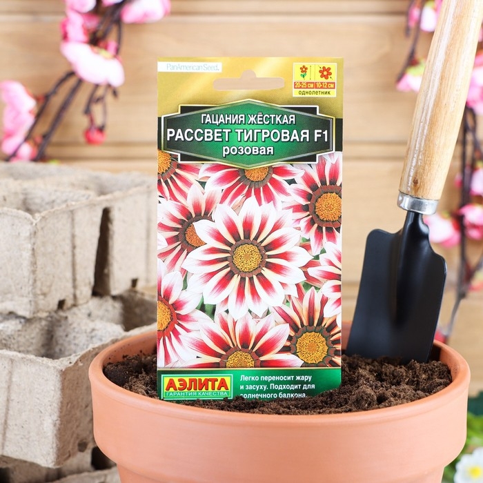 Семена цветов Гацания "Рассвет" F1 тигровая розовая, О, 5 шт