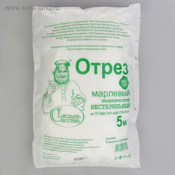 Марля медицинская "Емельянъ Савостинъ", плотность 32 г/кв.м, 0.9х5 м