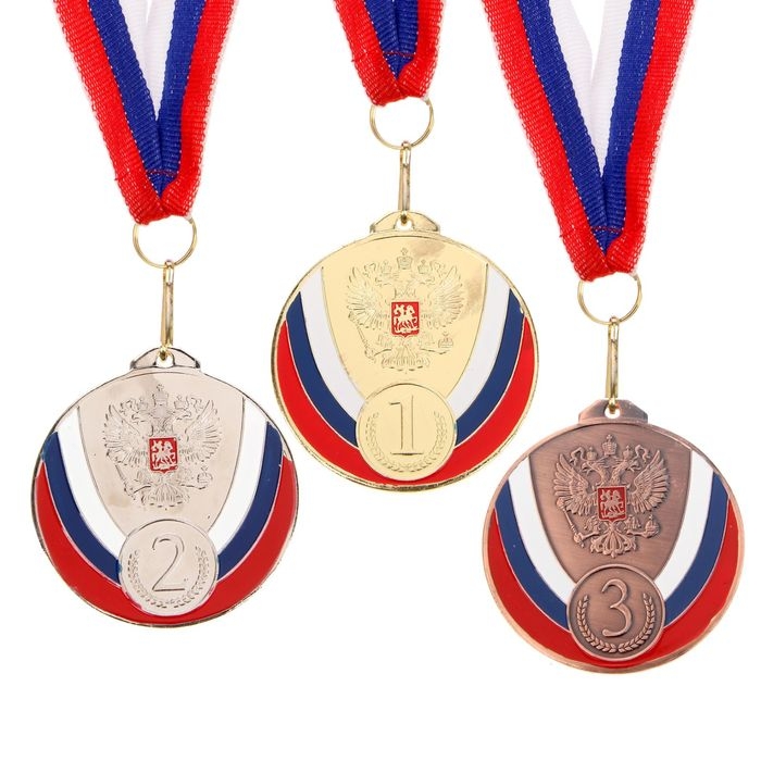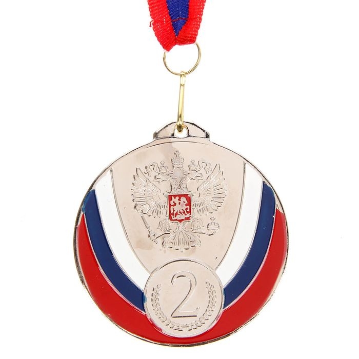 Медаль призовая 050, d= 7 см. 2 место, триколор. Цвет серебро. С лентой
