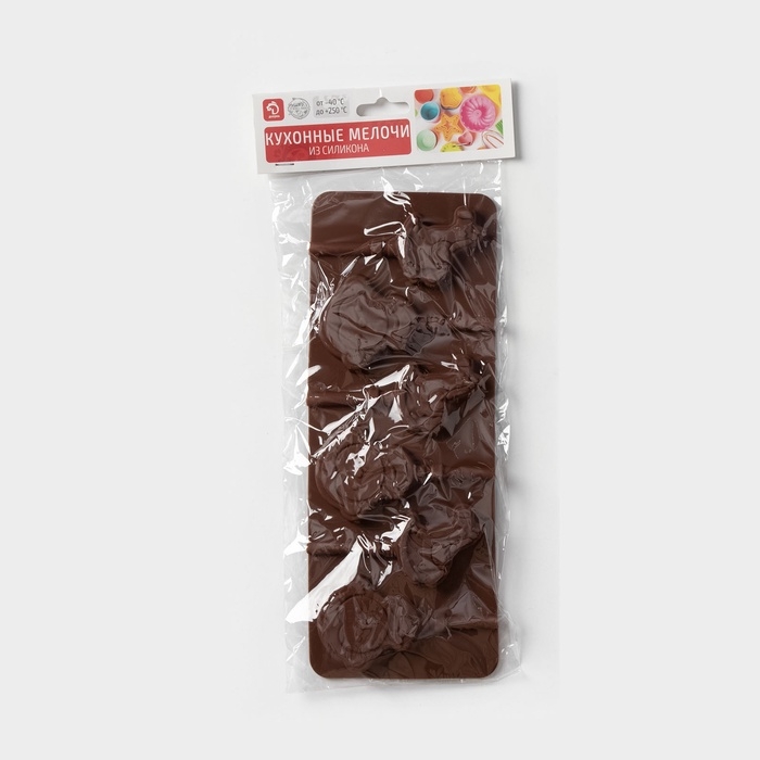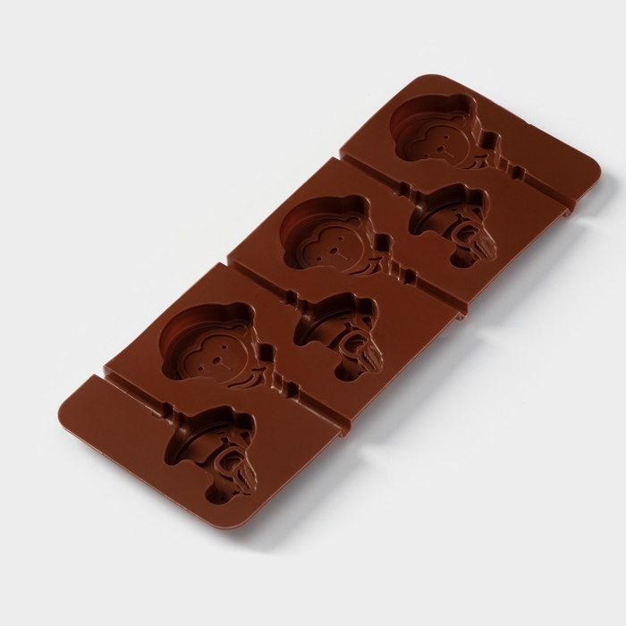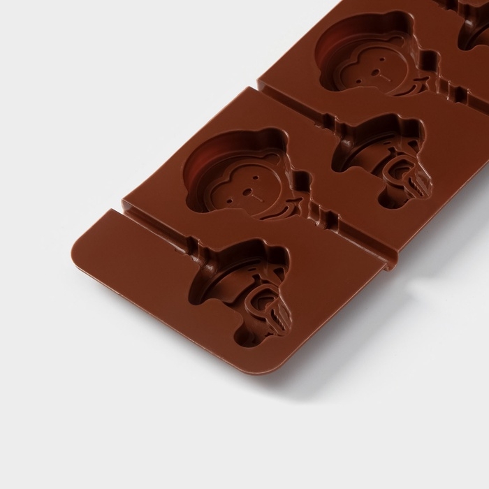 Форма для леденцов Доляна «Детство», силикон, 24×9,5 см, 6 ячеек (5×4,6), с палочками, цвет коричневый
