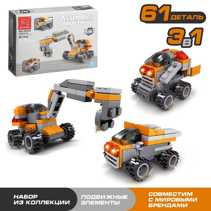 Конструктор «Спецтранспорт», 3 в 1, 61 деталь