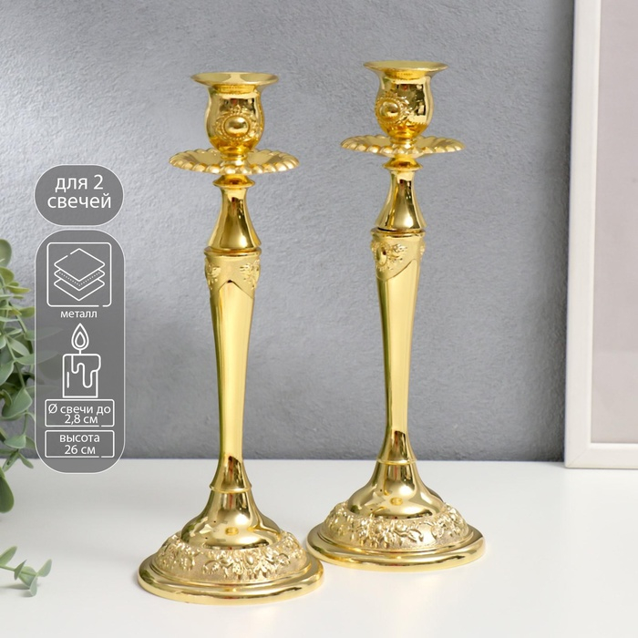 Подсвечник металл "Касиопея" набор 2 шт цвет золото 26х9,5х9,5 см