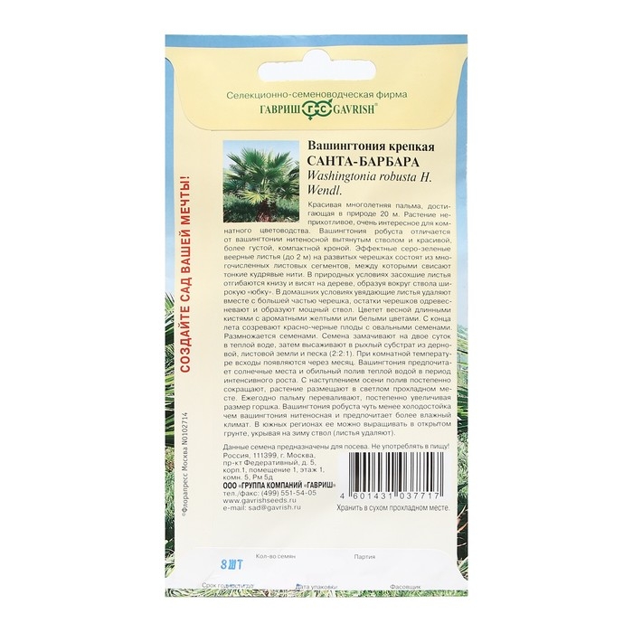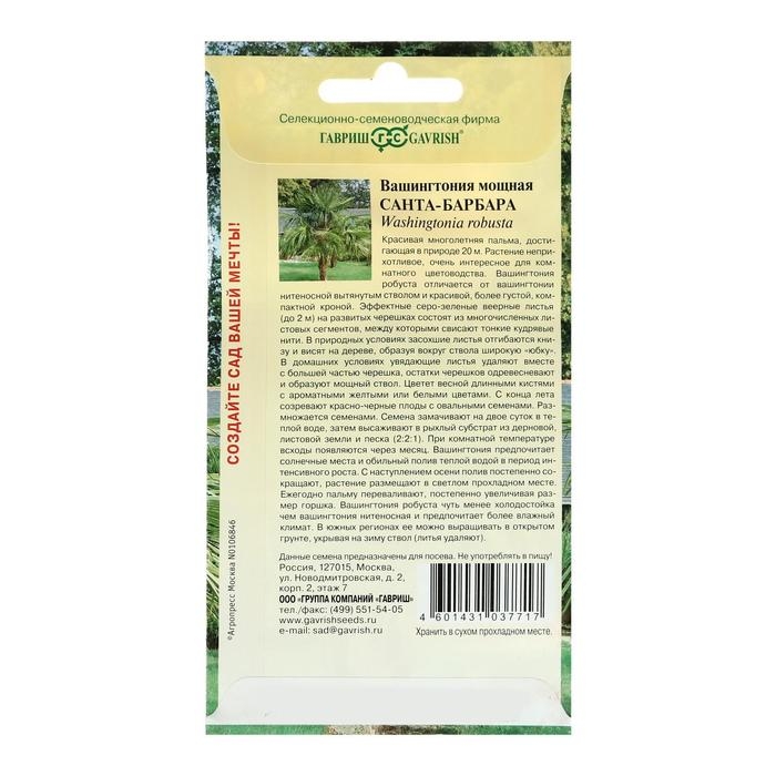 Семена комнатных цветов Вашингтония "Санта-Барбара", 3 шт.