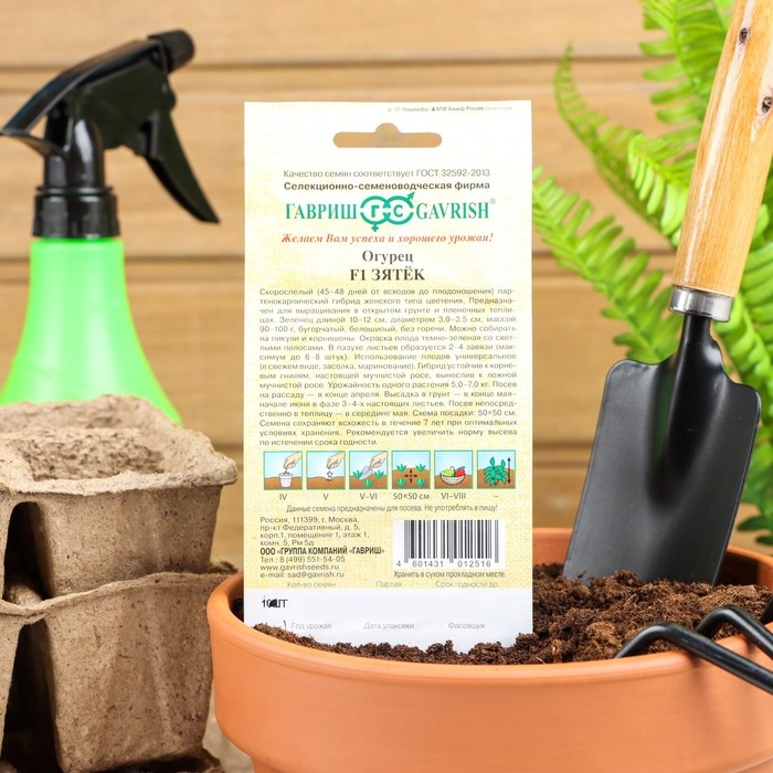 Семена Огурец "Зятек" F1, скороспелый, партенокарпический, 10 шт.