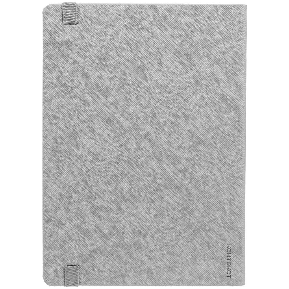 Ежедневник с твердой обложкой выполнен из материала Nice Touch, серый СС, и дополнен резинкой шириной 1 см и ляссе серого цвета.
