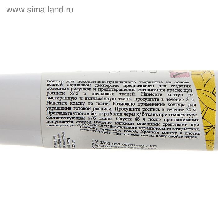 Контуры для декоративно-прикладного творчества на основе водной акриловой дисперсии предназначены для создания объемных рисунков и предотвращения смешивания красок при росписи х/б и шелковых тканей.