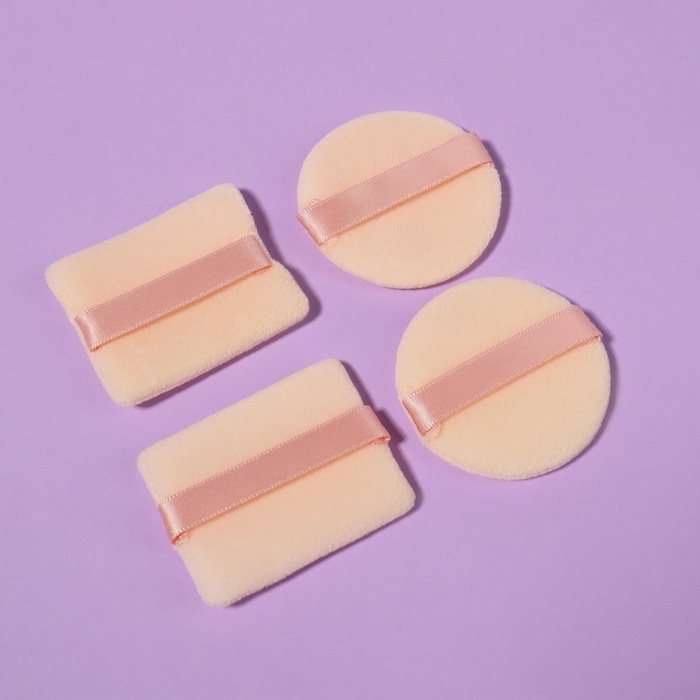 Пуховки для макияжа, набор - 4 шт, d = 5 см / 5,5 × 4,4 см, с держателем, цвет бежевый