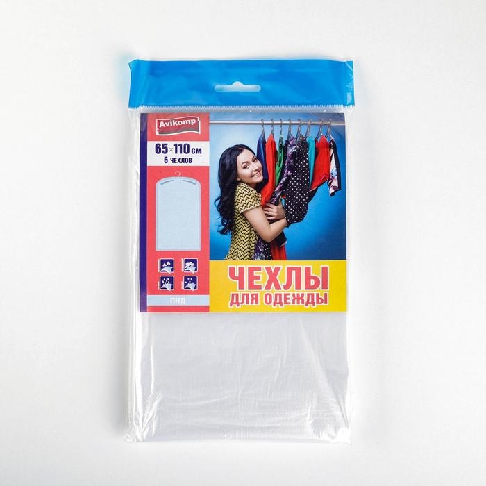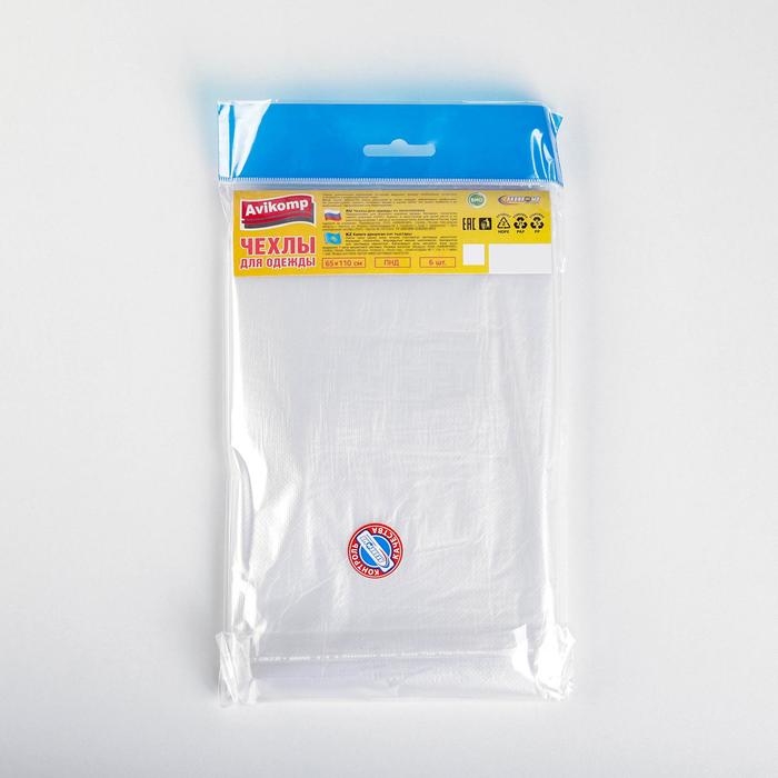 Набор чехлов для одежды, 65×110 см, 6 шт, цвет прозрачный