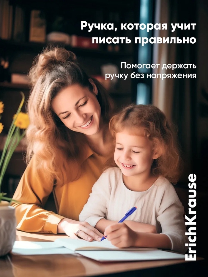 Ручка шариковая ErichKrause ErgoLine Kids Ultra Glide, первоклассника, эргономичный держатель, корпус Soft-touch, узел 0.7 мм, чернила синие, микс