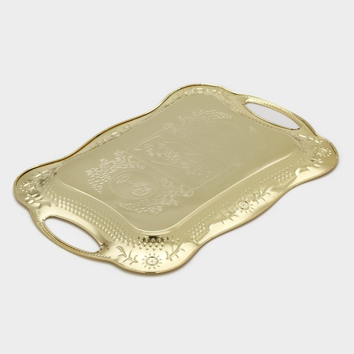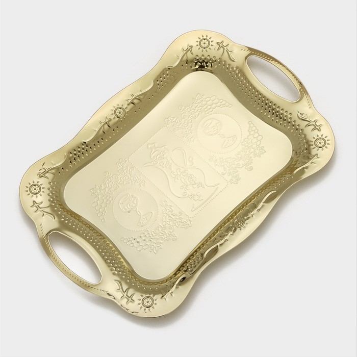 Поднос из нержавеющей стали с ручками «Изобилие. Золото», 44,7×30×3 см, цвет золотой