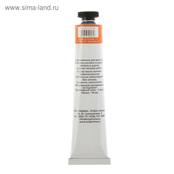 Краска масляная в тубе 46 мл, Гамма "Студия", №118 кадмий оранжевый, имитация