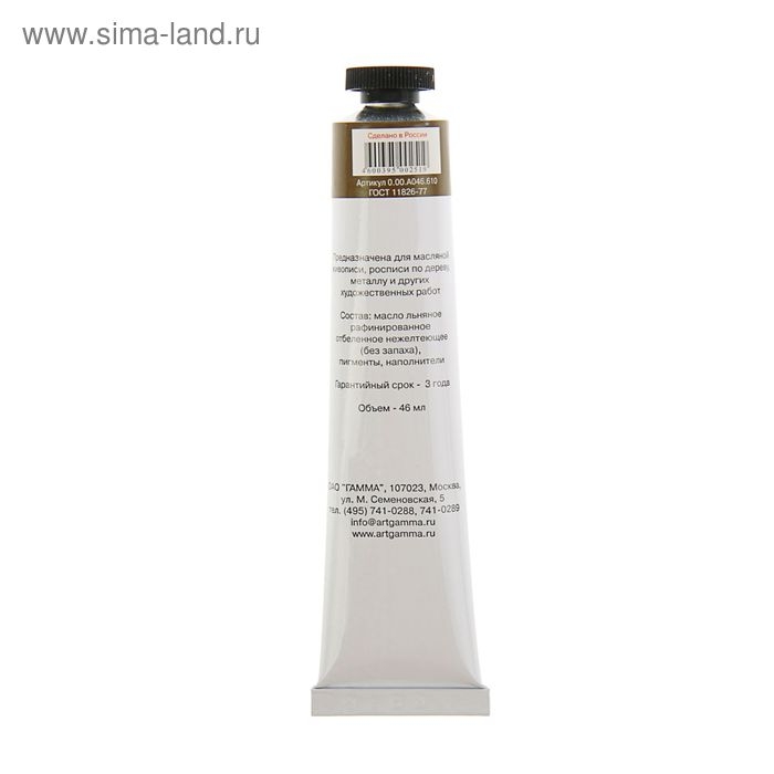 Краска масляная в тубе 46 мл, Гамма "Студия", №610 умбра жжёная