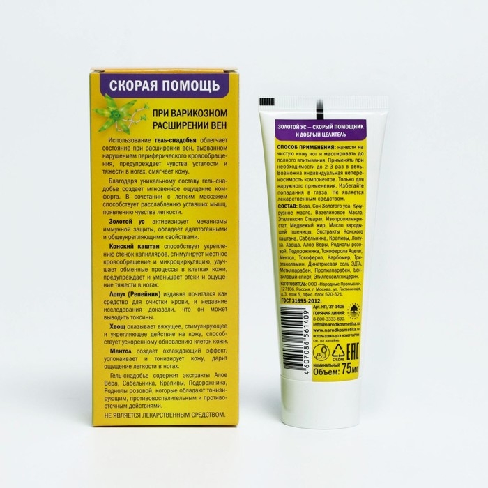 Гель-снадобье "Новые тайны Золотого уса", при тяжести в ногах и варикозном расширении вен, 75 мл