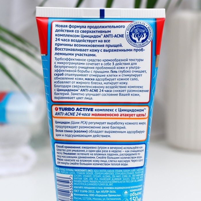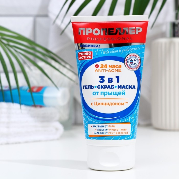 Гель + скраб + маска от прыщей "Пропеллер" Turbo active 3 в 1, 150 мл