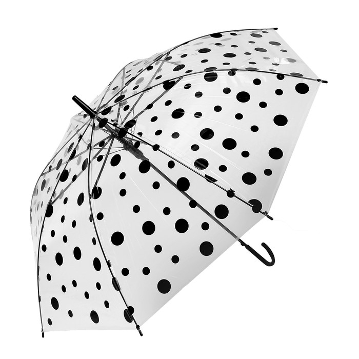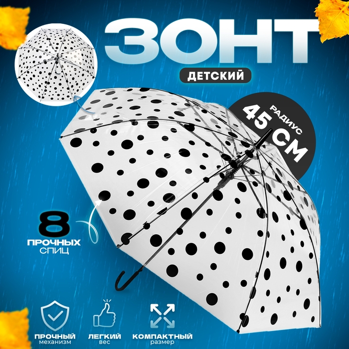 Зонт детский «Горохи», полуавтоматический, r=45см, цвет прозрачный/чёрный