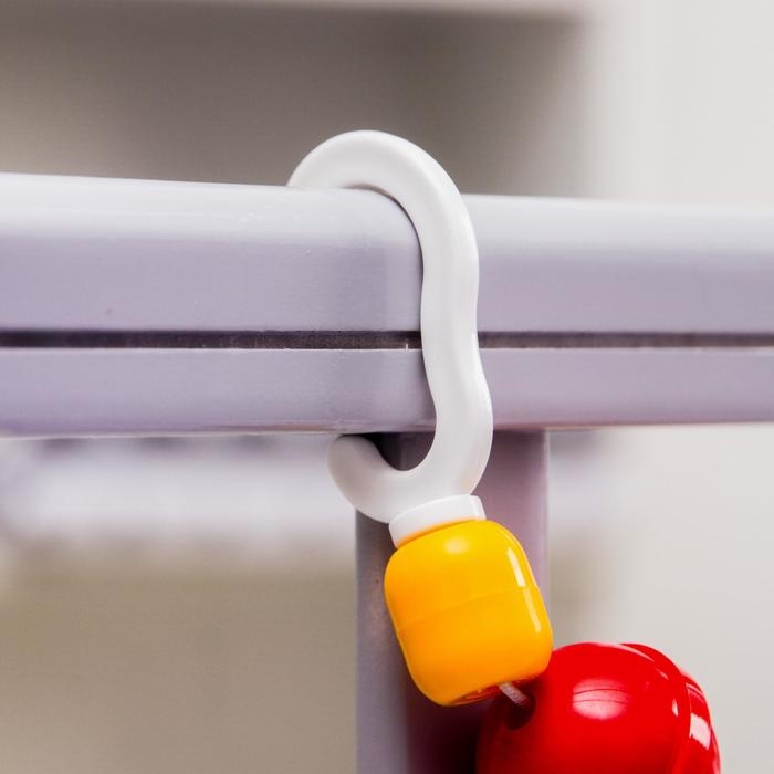 Погремушка-подвеска крепится на кроватку или коляску новорождённого. Игрушка успокоит и развеселит малыша дома и на прогулке. Кроха будет рассматривать яркий предмет и тянуться к привлекательным фигуркам.