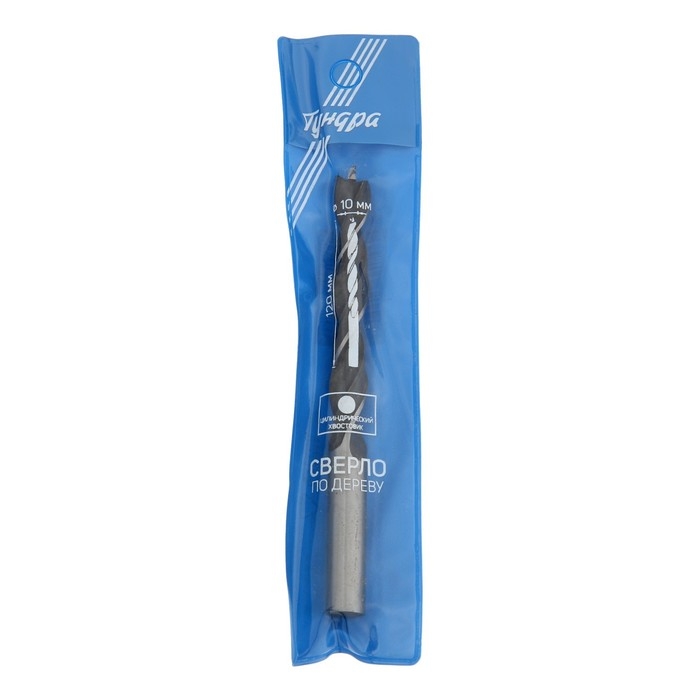 Сверло по дереву ТУНДРА, цилиндрический хвостовик, 10 х 120 мм