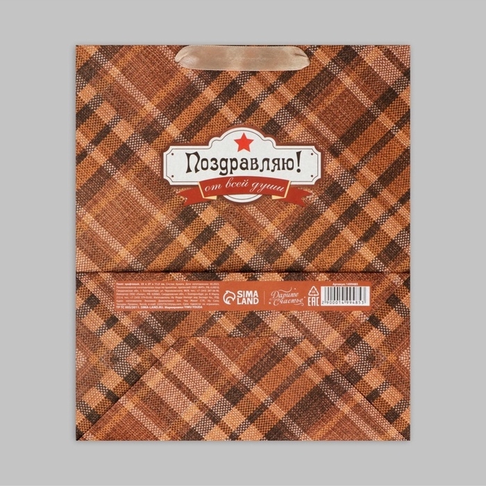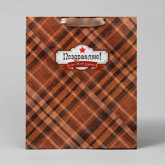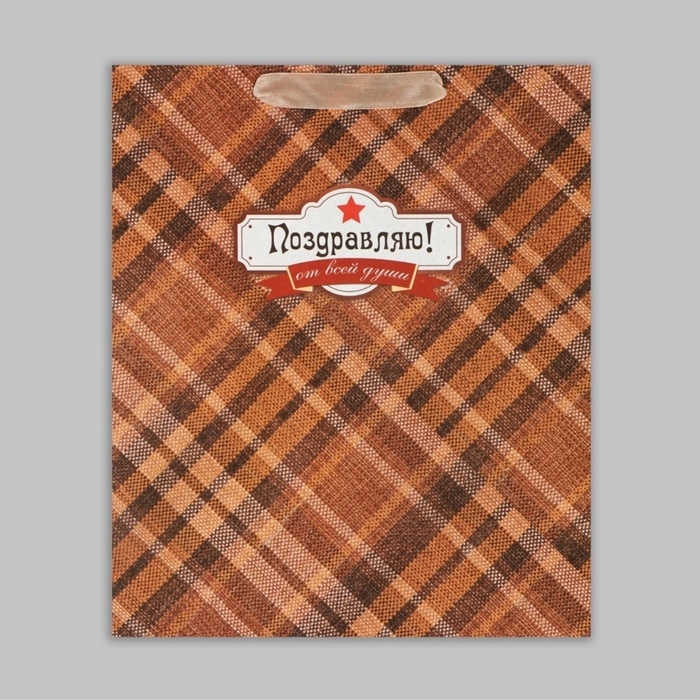 Пакет подарочный крафтовый вертикальный, упаковка, «Поздравляю от всей души!», ML 23 х 27 х 11,5 см