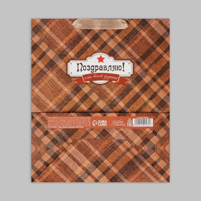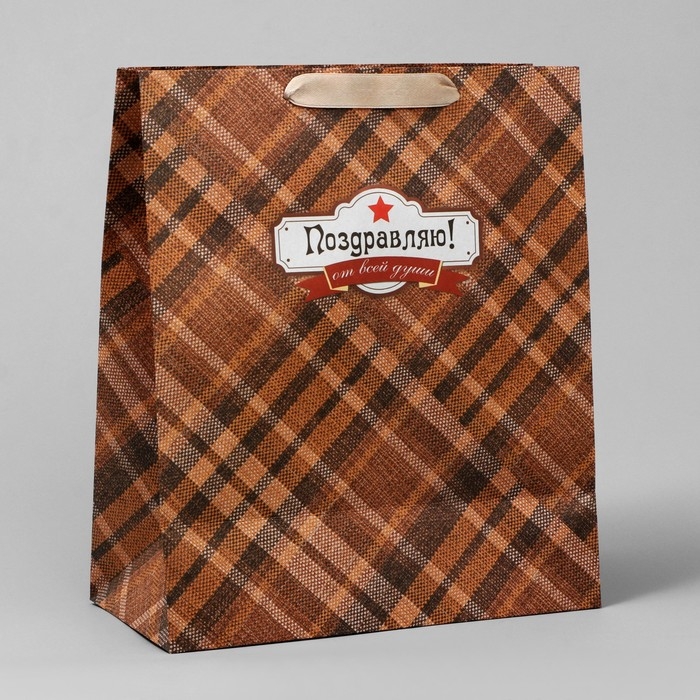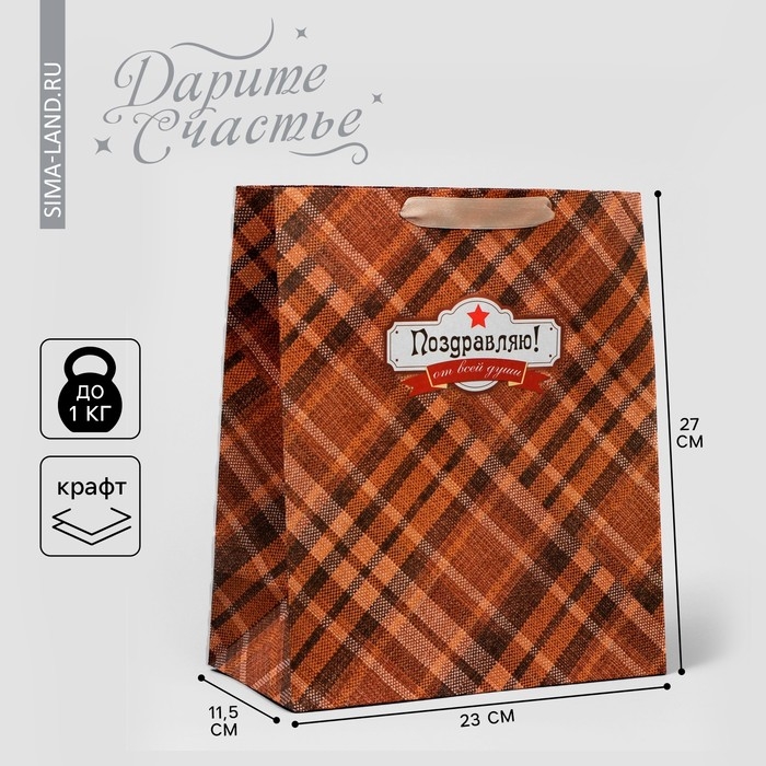 Пакет подарочный крафтовый вертикальный, упаковка, «Поздравляю от всей души!», ML 23 х 27 х 11,5 см