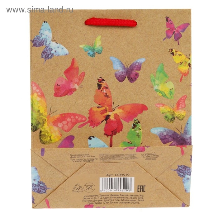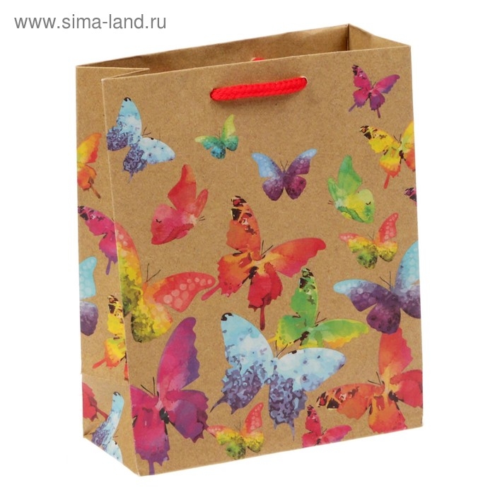 Пакет подарочный крафтовый вертикальный, упаковка, «Бабочки», ML 23 х 27 х 11,5 см