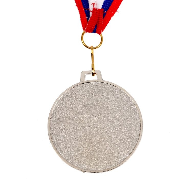 Медаль призовая 013, d= 5 см. 2 место, триколор. Цвет серебро. С лентой