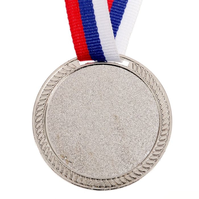Медаль призовая 013, d= 5 см. 2 место, триколор. Цвет серебро. С лентой