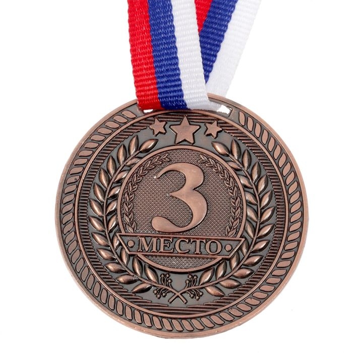 Медаль призовая 013, d= 5 см. 3 место, триколор. Цвет бронза. С лентой
