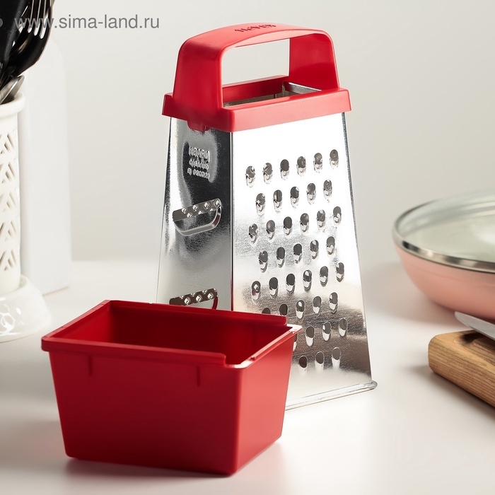 Тёрка Доляна «Комфорт», 4 грани, с контейнером 450 мл, ручка круглая, 28×12×9 см, цвет МИКС