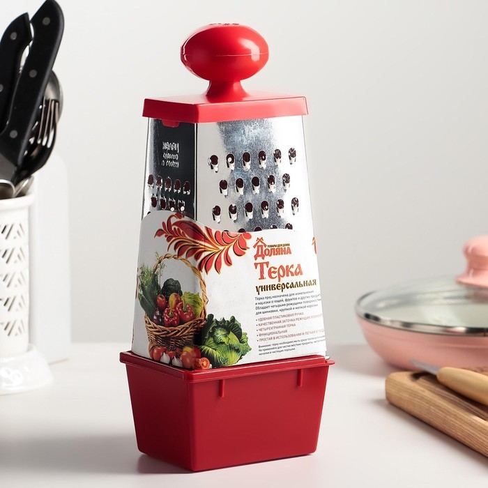 Тёрка Доляна «Комфорт», 4 грани, с контейнером 450 мл, ручка круглая, 28×12×9 см, цвет МИКС