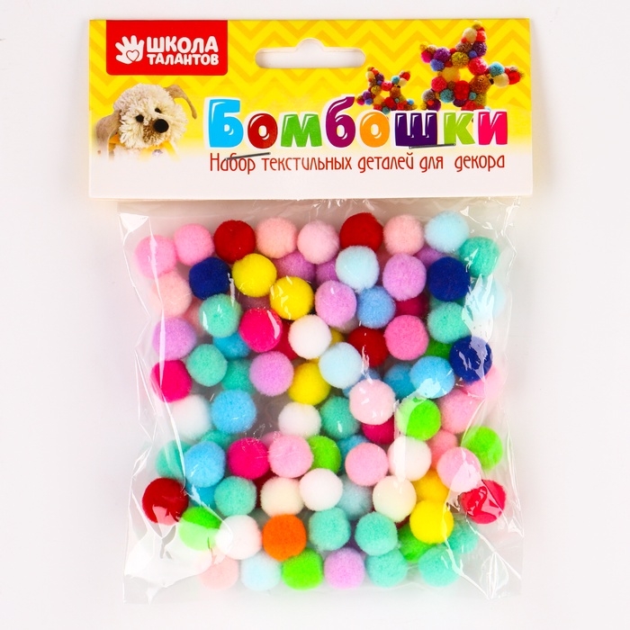 Набор текстильных бомбошек подойдёт для создания детских поделок и аппликаций, декорирования кукол и игрушек.