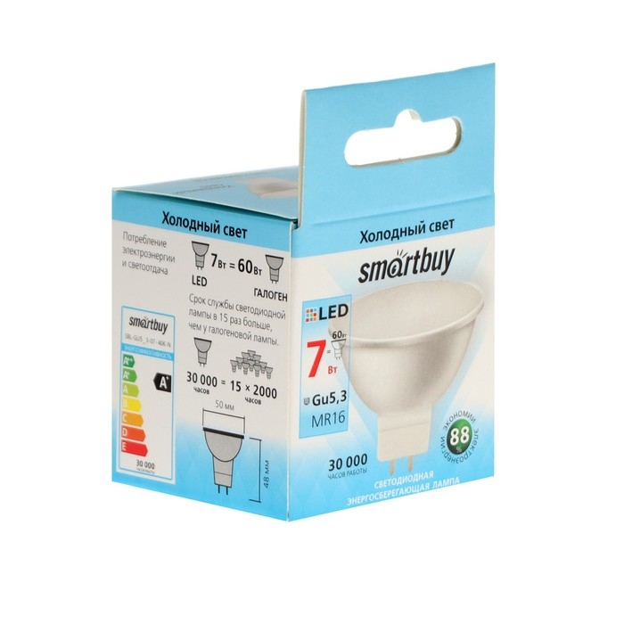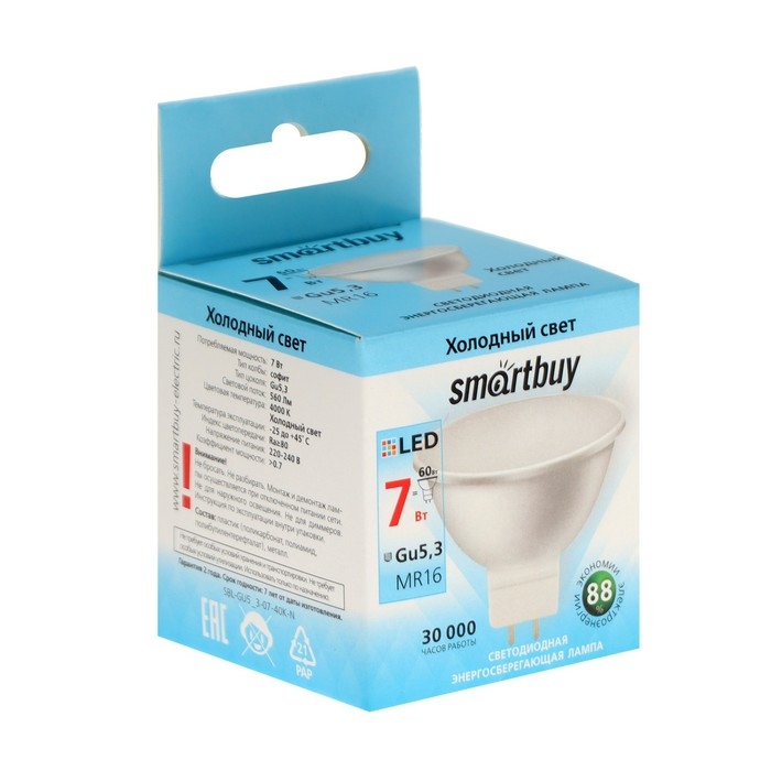 Лампа cветодиодная Smartbuy, GU5.3, 7 Вт, 4000 К, дневной белый свет