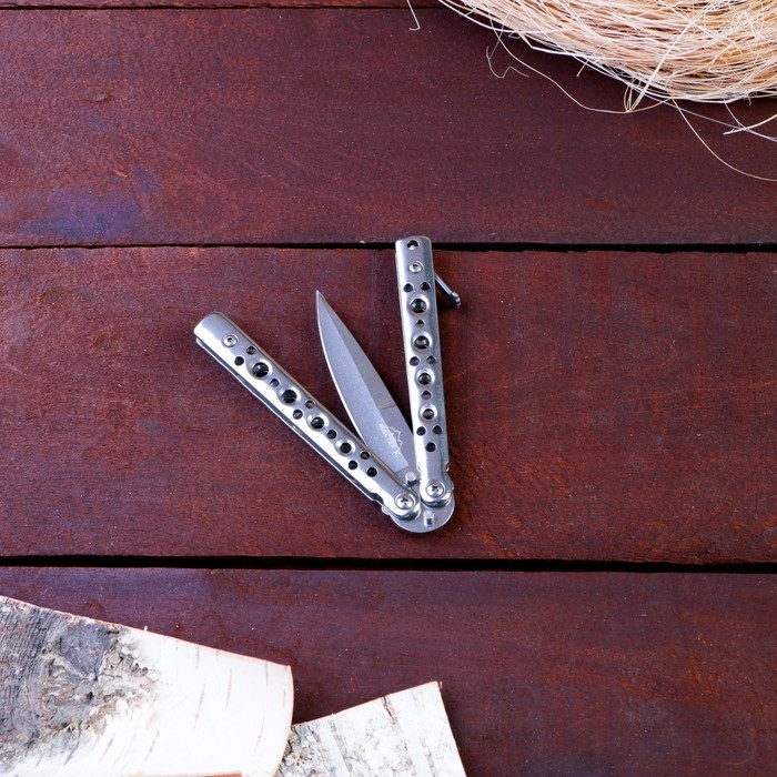Нож-бабочка "Серебро" 15,7см, клинок 69мм/1мм, серебристый не является холодным оружием. Прибор имеет простую конструкцию и быстро открывается одной рукой. Это даёт ему преимущества в экстремальных условиях.