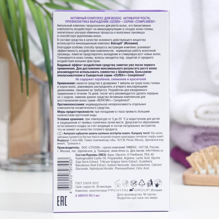 Активный комплекс для волос Compliment «Селен +», активатор роста, профилактика выпадения, 8 шт. х 5 мл