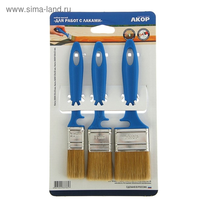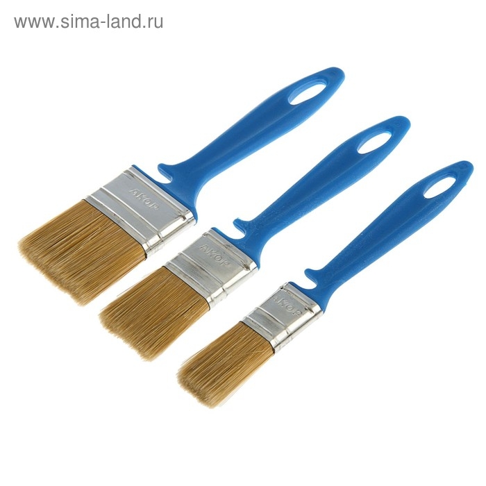 Набор кистей "АКОР", натуральная щетина, пластиковая рукоятка, 25, 35, 50 мм, 3 шт.