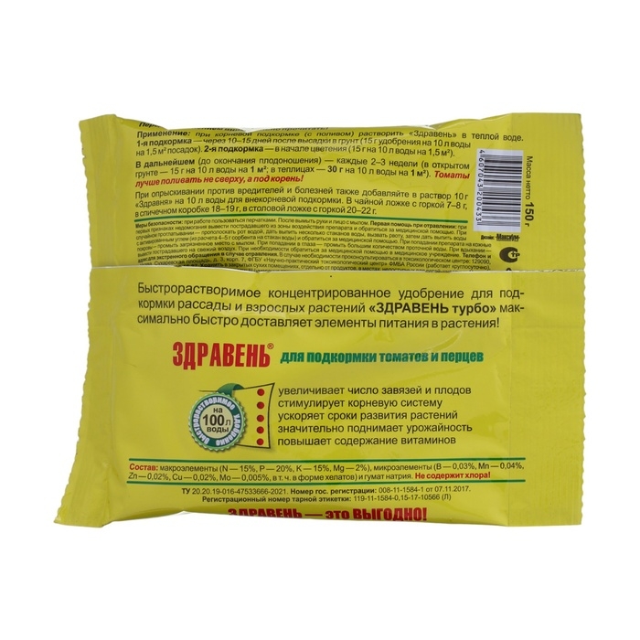 Удобрение Здравень турбо для подкормки томатов и перцев, 150 г