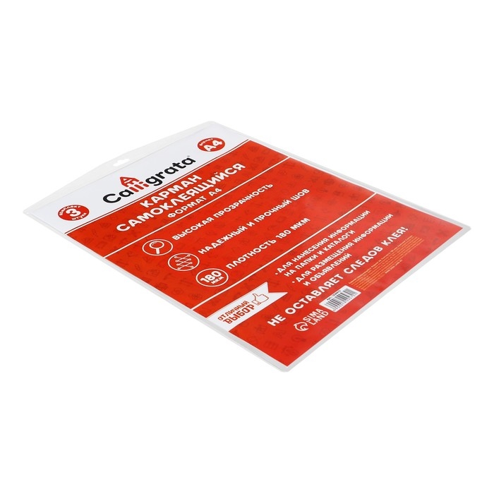 Карман самоклеящийся А4, 223 х 303 мм, комплект 3 штуки, Calligrata, 180 мкм, на лицевую сторону папок и любые гладкие поверхности
