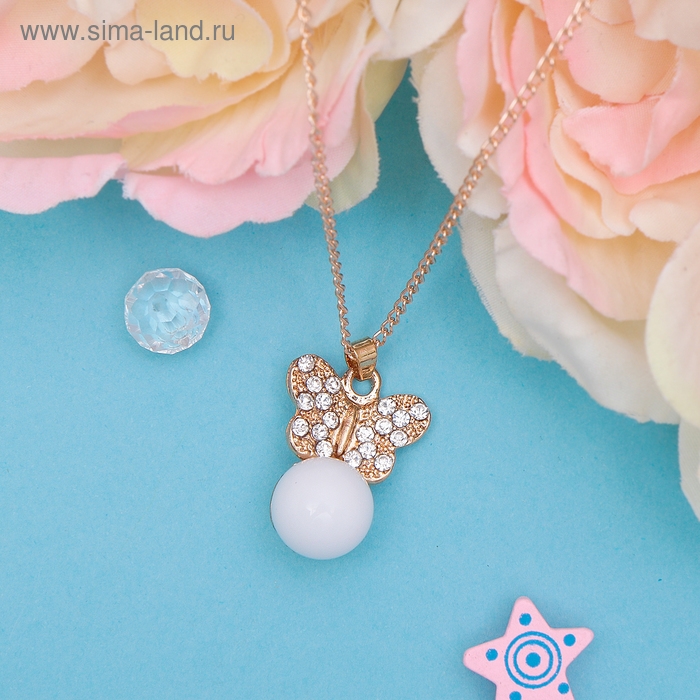 Кулон «Легкость» бабочка с бусинкой, цвет белый в золоте