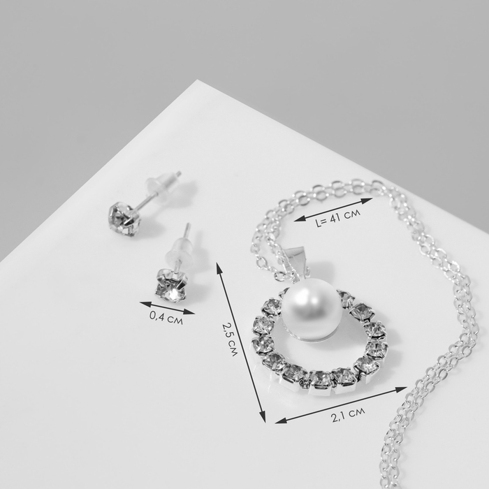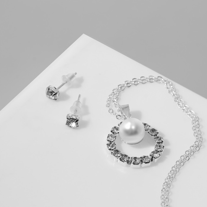 Гарнитур 2 предмета: серьги, кулон «Невесомость», круг с бусиной, цвет белый в серебре, 45 см