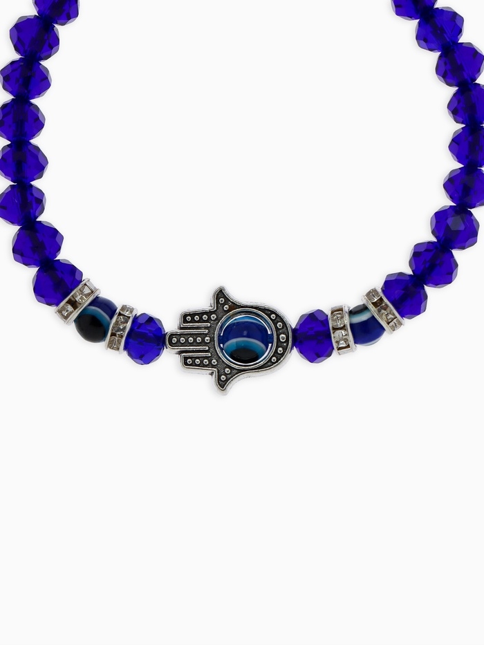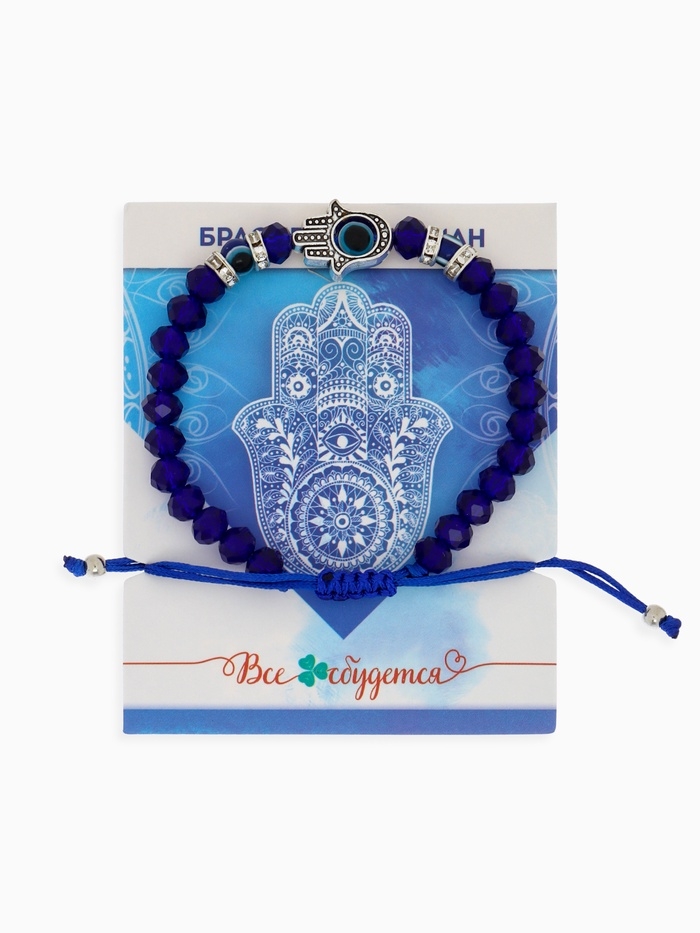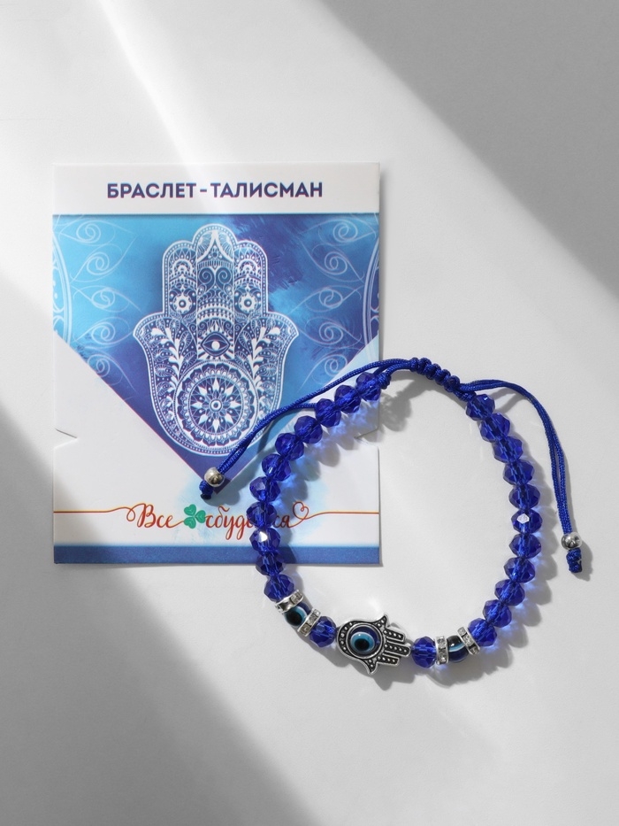 Браслет-оберег «Рука счастья Хамса» хрусталики, цвет синий с серебром, d=8 см