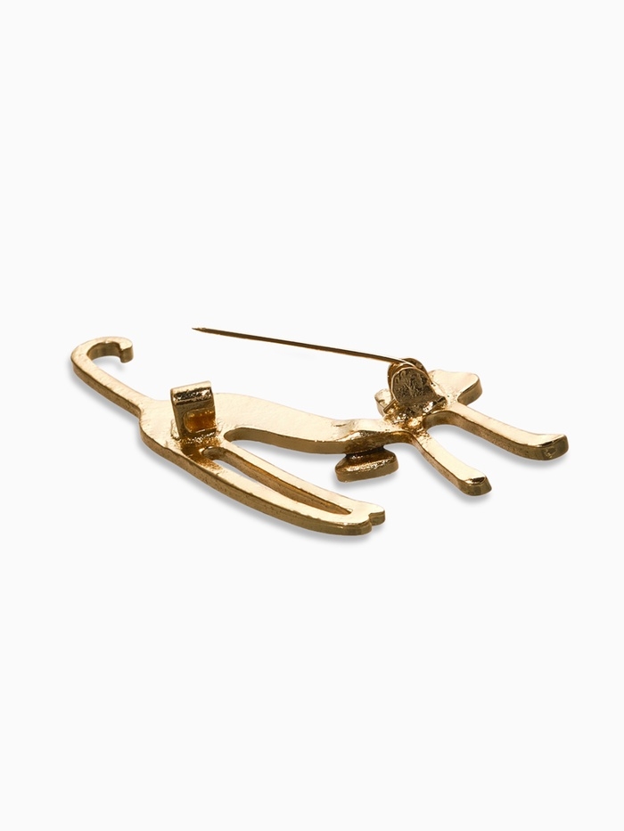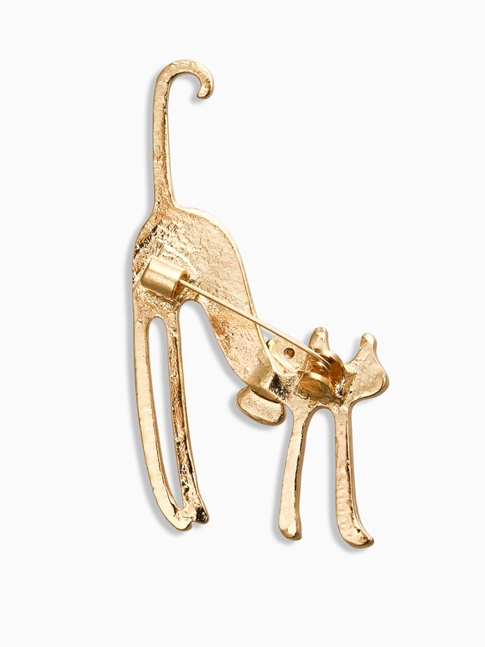 Брошь «Кошка грациозная с бантиком», цвет чёрный в золоте