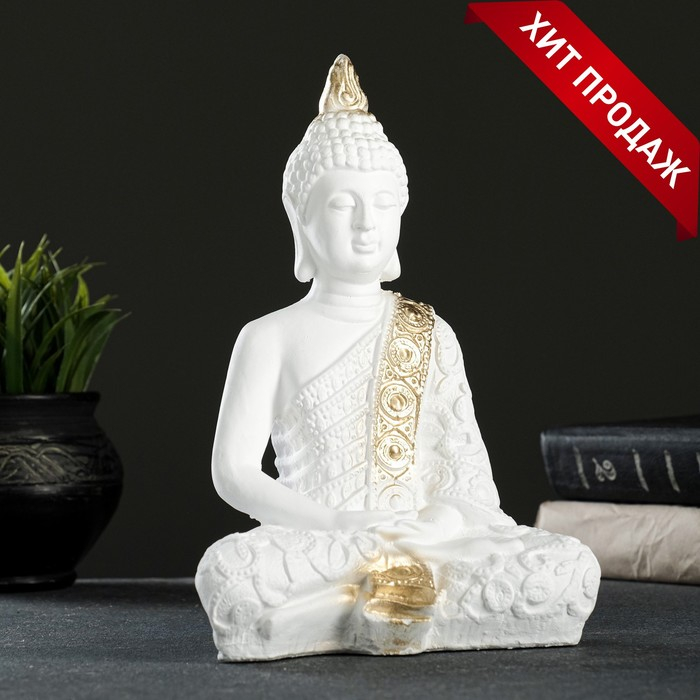 Фигура "Будда малый" 16х9х23см бело-золотая