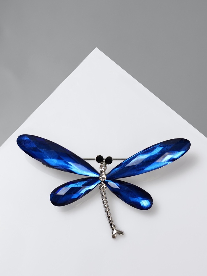 Брошь «Стрекоза», граненые крылья, цвет синий в серебре