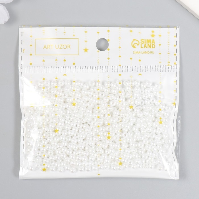 Бусины для творчества "Жемчуг" набор белый d=0,4 см 20 гр