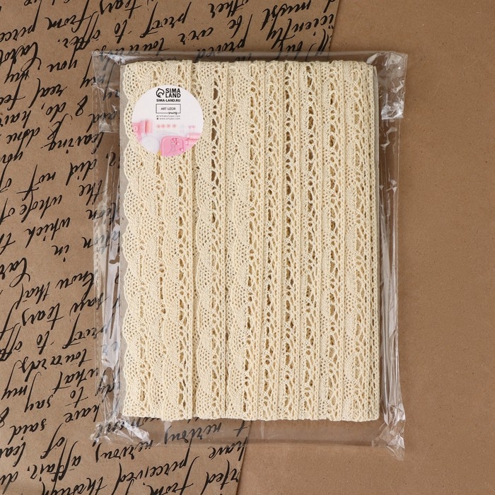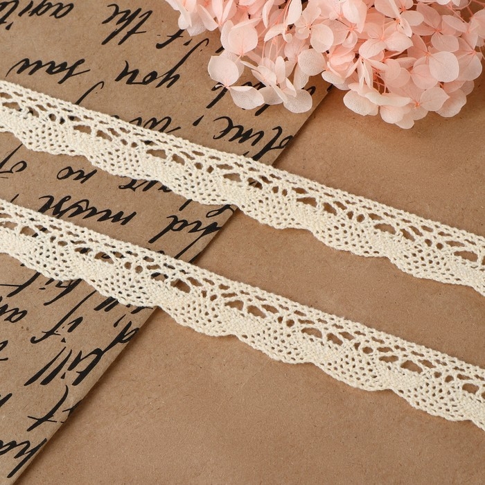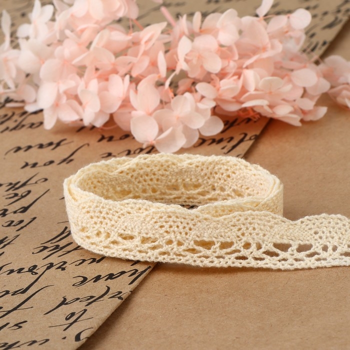 Кружево вязаное, 20 мм × 15 ± 1 м, цвет бежевый