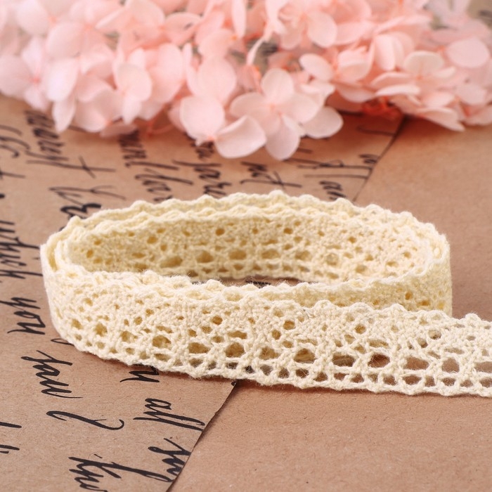 Кружево вязаное, 15 мм × 15 ± 1 м, цвет бежевый