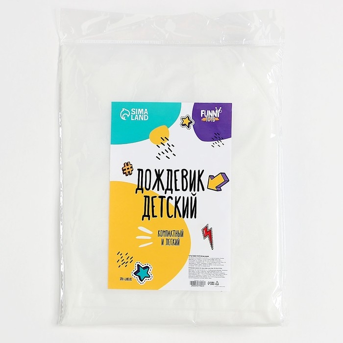 Детский дождевик — незаменимый аксессуар, с которым ребёнок останется сухим в любую погоду! Яркий компактный и лёгкий плащ удобно брать с собой. Он без труда застёгивается благодаря крепким пластиковым кнопкам.